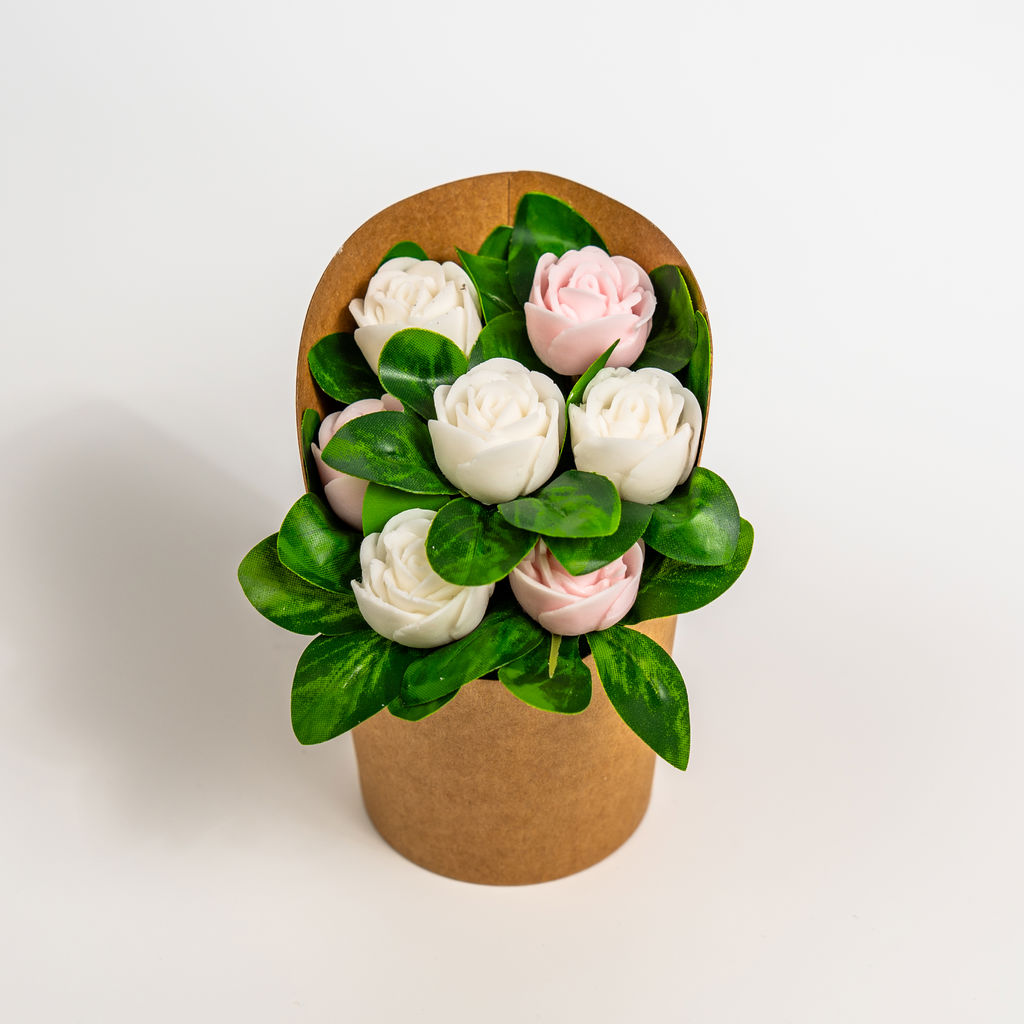 פרחי סבון – עציץ פרחי סבון ריחני – ורדים ורוד-לבן
